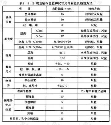 混凝土结构质量验收规范GB50204-2015现浇结构允许偏差范围: