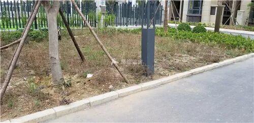 宅前绿化黄土裸露,灌木长势不旺。