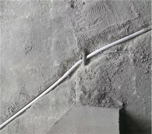 墙体破损严重,线管开槽方式不正确。