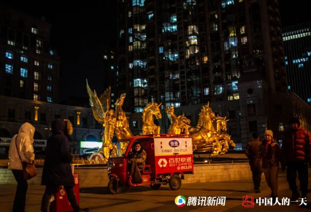 晚上7点,李勇在去工作路上。因为没有本地车牌,他找了辆快递三轮车代步。