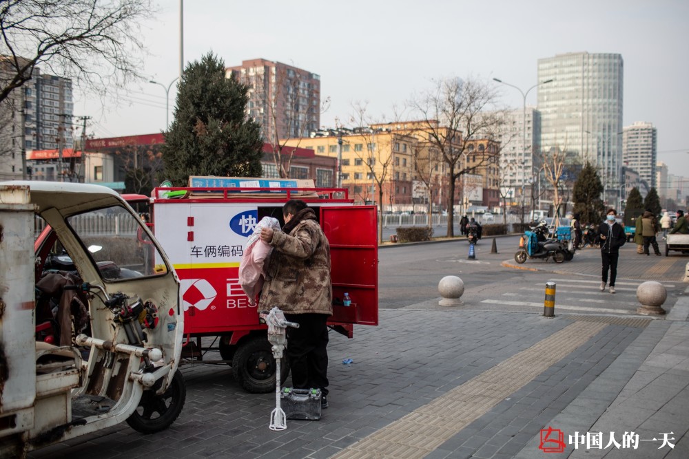 他想把快递车留这个小区里,自己背着工具去坐公交,免得路上受冻。