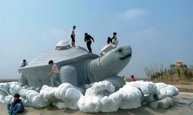 在2015年5月3日,位于河北唐山的曹妃甸区柳赞镇花费两千三百万元建造的"神舟第一龟"成功修造,从成功修建到今天为止算起来已经有三年多的时间了。