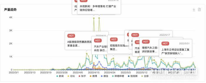 据21世纪新汽车研究院联合数说故事发布的统计数据,2022年上半年,公众关注的汽车产业十大事件中,“疫情下上海汽车产业及供应链安全”以50,895的全网总声量位居2022年上半年汽车产业十大热点事件第七位。