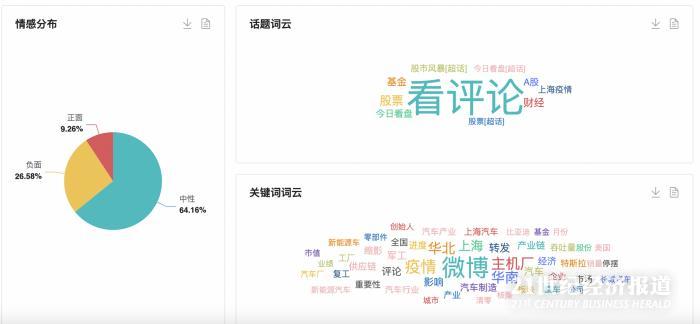 从全网热门话题的分析看,对“疫情下上海汽车产业及供应链安全”持中性态度的比重最高,达到64.16%;其次是负面情绪,占比26.58%:正面情绪占比仅为9.28%。
