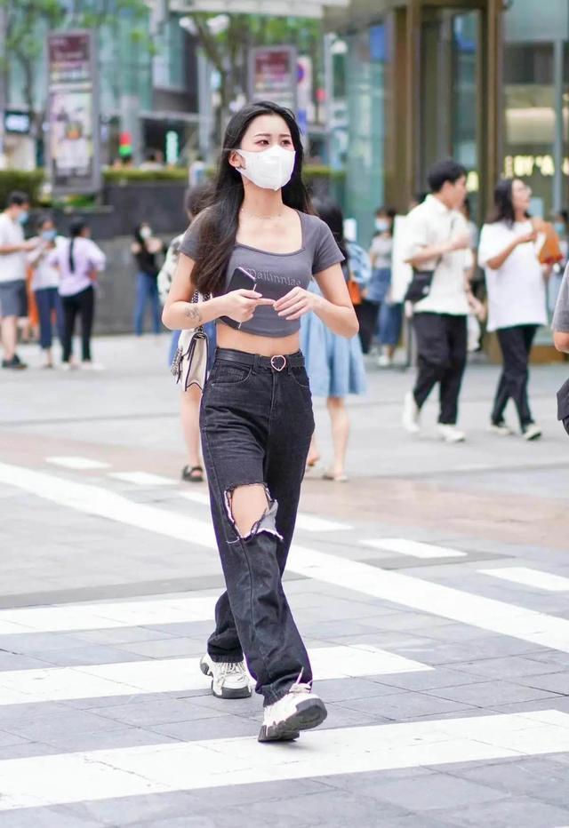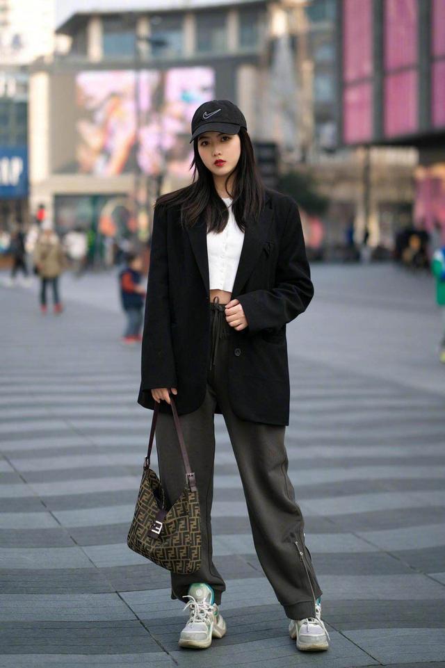 为穿搭加入潮流元素的时候,大家需要适当空出留白区域,这个留白区域可以是露肤部分,也可以是纯色服饰。