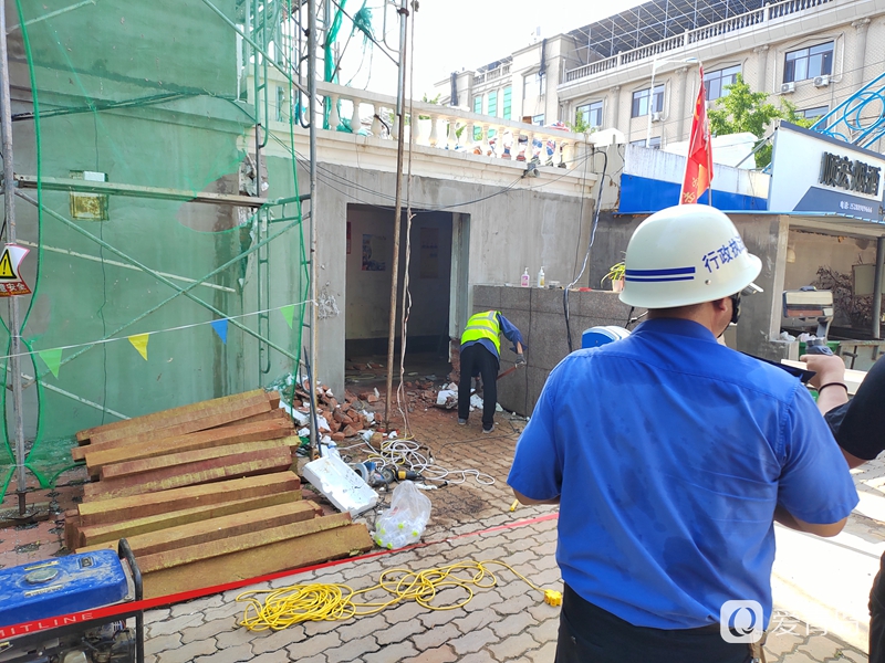 7月14日上午,莱西市综合行政执法局联合水集街道办事处泰安路居委会工作人员对龙翔二苑小区28处违法建筑动工拆除,组织执法人员、施工人员30余人。