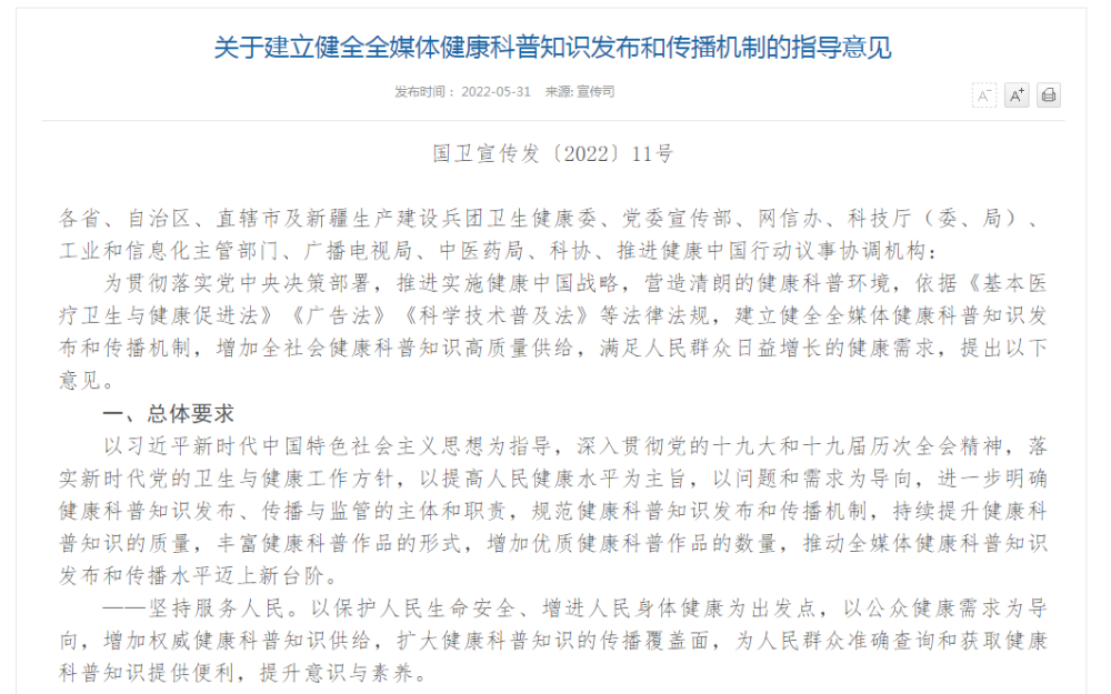 对此,指导意见提出,制作、发布和传播的健康科普信息还应经由相应领域的专家进行编写与审核,并符合有关要求。