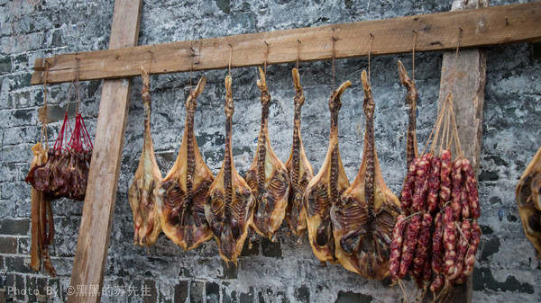 当你走进千年瑶寨,你会发现这里原有的少数民族气息非常浓厚,墙壁上挂着他们自然风干的腊肉和鸭肉,一些老者依然穿着他们民族的服饰,有的坐在路边看着远方,有的三五一坐聊着天,你会发现他们的生活节奏特别的慢,特别的舒服。