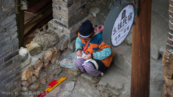 半山腰的歌堂坪是寨子的最高处,在这里可以远望盘王峰和周围连绵不断的山峰。其实来到这里你会发现生活会越来越简单,越纯粹,和如今人们低头拿着手机完全相反。可惜此行的天气不给力,错过了这里的日出,不过阴天也有独特的美,远处的山峰隐约的相叠在一起,特别神秘。