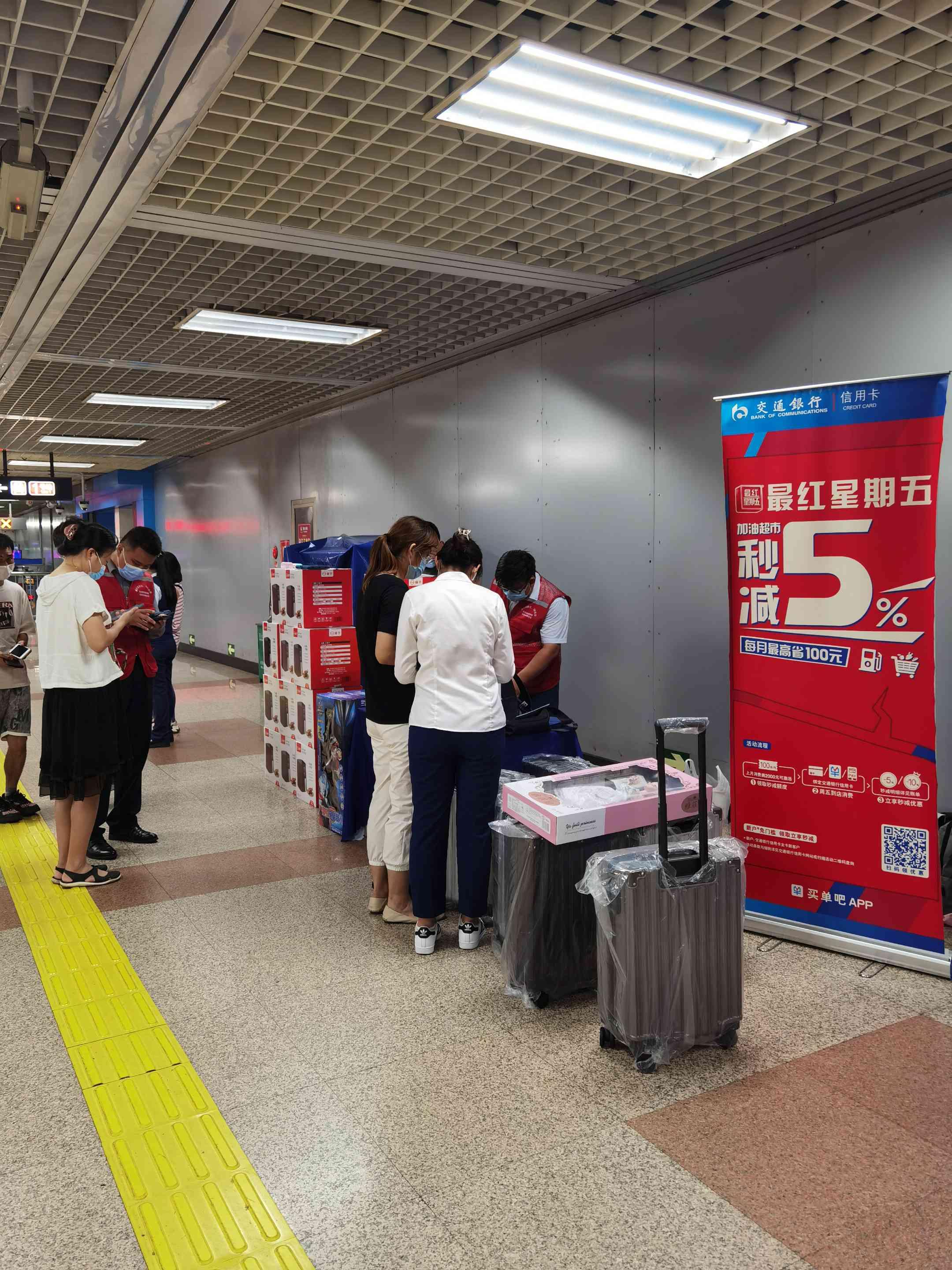 但只要礼品够诱人,传统的地铁站拉新客仍旧适用,行李箱、空气炸锅……丰厚的礼品在现场一一展示,在北京地铁站吸引了不少乘客围观驻足,有的人在现场立刻开卡。