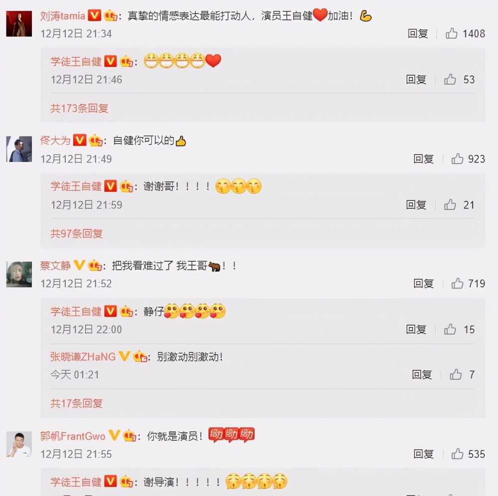 尤其是王自健的表演,不但看哭了郝蕾张颂文和不轻易落泪的李成儒,还被章子怡点评为“巨大的惊喜”,演完就收获了各路明星的点赞,火速赶来留言的李诞,称呼从自健又变回了王哥。