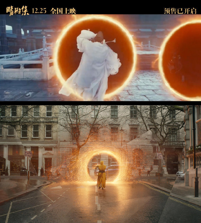 而且《奇异博士》中画阵法可以瞬移,结果《晴雅集》中也是如此。当然,这种可以发光穿梭的隧道在很多电影中都有见过,算不上什么抄袭不抄袭的,但阵法一事却是没得洗了啊。在堂叔浅薄的认知里,阴阳师不都是甩个小纸条条或者竖起两根手指念咒吗?怎么郭敬明的阴阳师特地去奇异博士那里进修“学习”了?