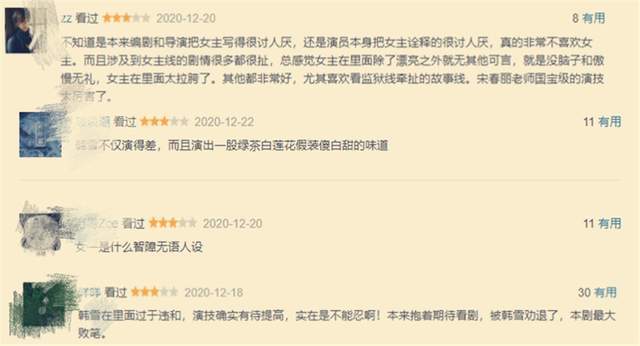 《巡回检察组》中罗欣然一角同样陷入这个问题,成了差评攻击对象,连带韩雪演技也受到质疑。