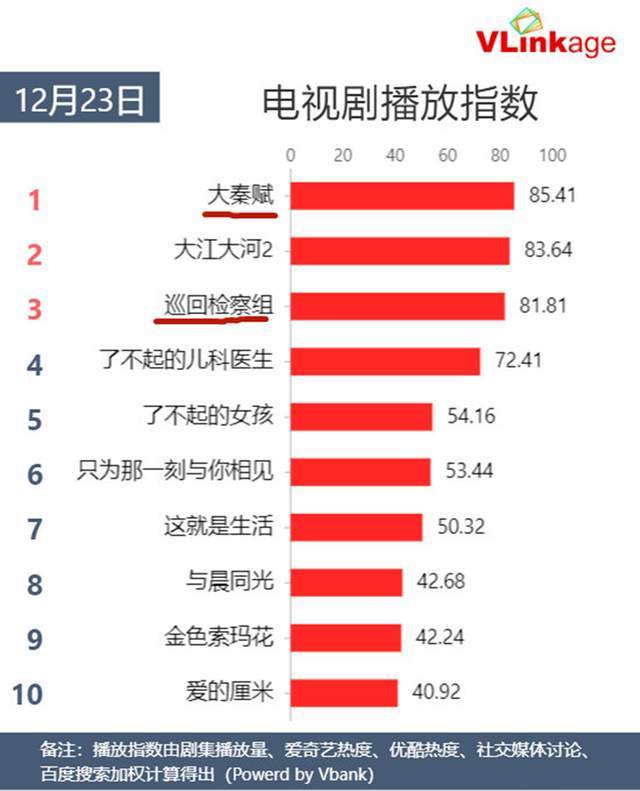 正在播出的《巡回检察组》、《大秦赋》如今在豆瓣都已经跌到6分+,但仍旧阻挡不了他们一个收视走高,一个网播量居高不下的成绩。