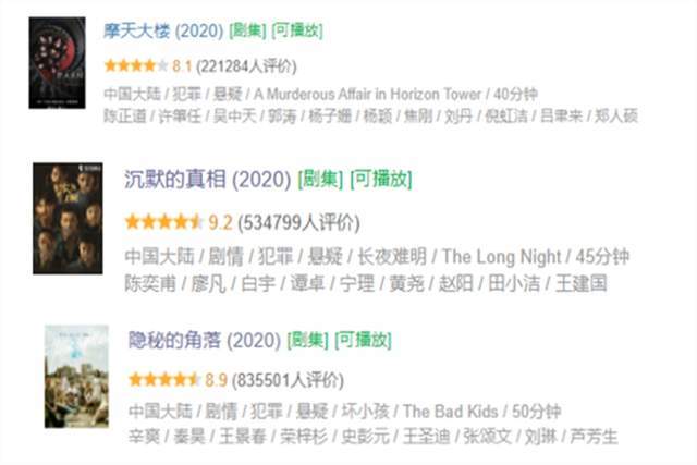 一部优点可以完全掩盖缺点的佳作绝对不会被黑到6分,2020年《隐秘的角落》、《沉默的真相》评分便很可观,真正的好剧,自来水会撑起一片天。