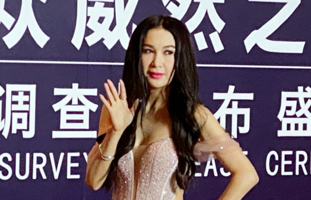 温碧霞穿着纱裙走向镜头的时候依旧仙气飘飘,可脸实在是有些崩了,近期出席红毯都是大浓妆,特别眼妆部分,总是茂密的眼睫毛搭着浓厚的眼线,口红颜色也不是很适合。