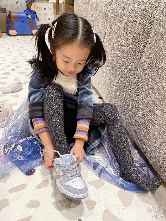除了大方晒出女儿正脸之外,陈赫还不忘给女儿的新鞋底来个特写,果真是小公主的待遇,连鞋底都闪闪亮亮呢。对于自己新鞋爱不释手的安安,这是要和爸爸陈赫一样成为鞋控的节奏吗?还真是“有其父必有其女”!